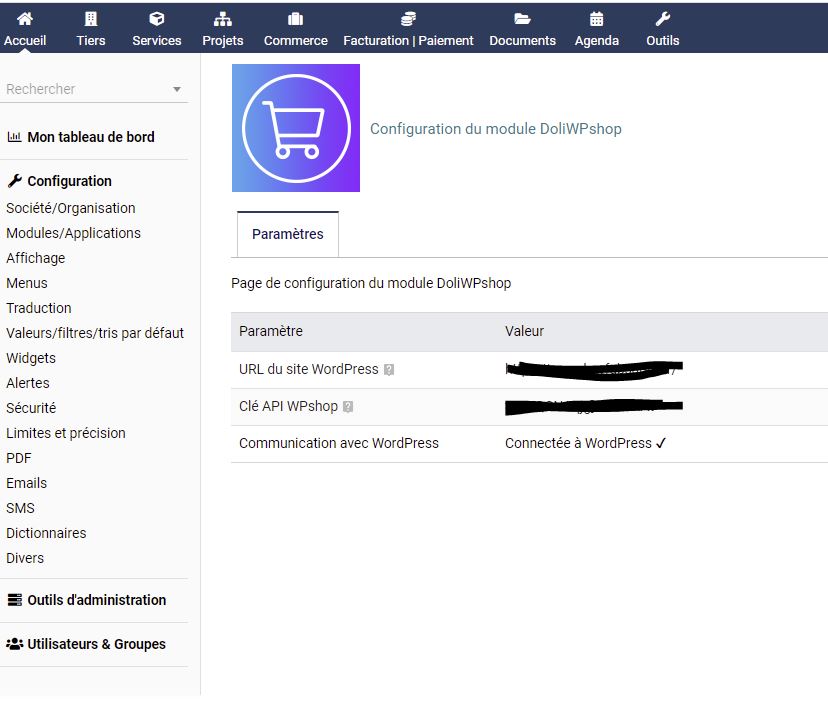 Pour que Dolibarr pilote WPshop il faut installer l’extension